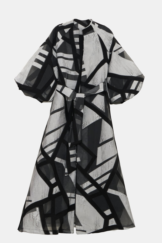 Out Of StockBlack and White Brocade Kimono Overcoat with Belt