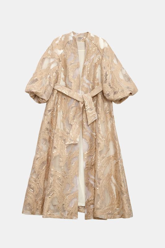 Out Of StockGolden Beige Brocade Kimono Overcoat with Belt