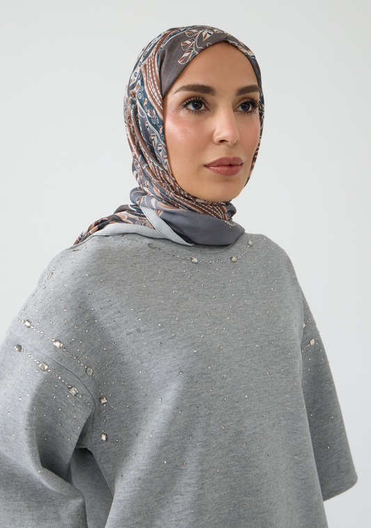 Oversized T-Shirt with Delicate Stone Embellishments & Pockets