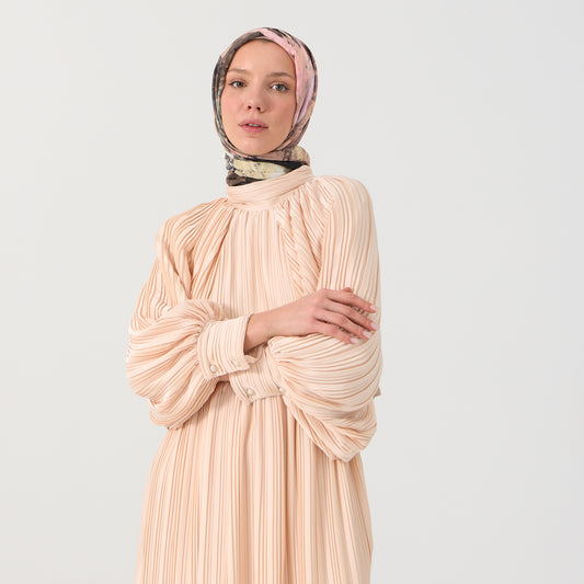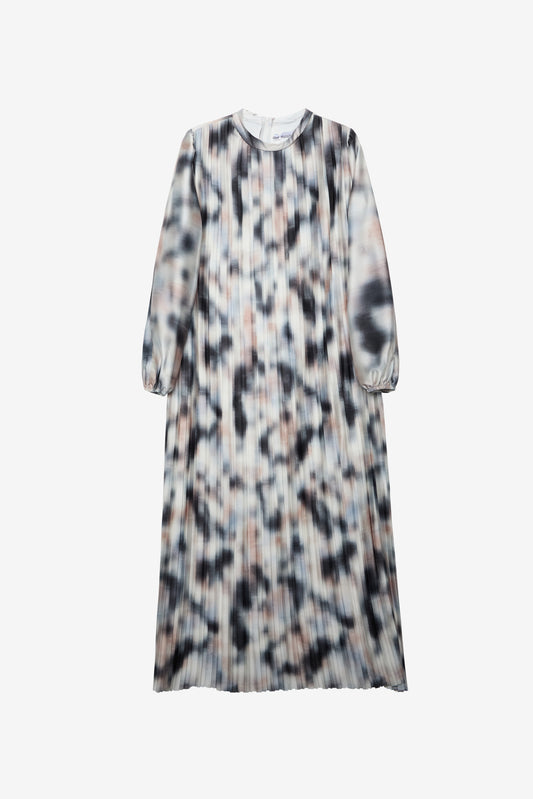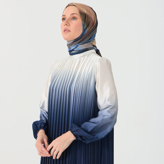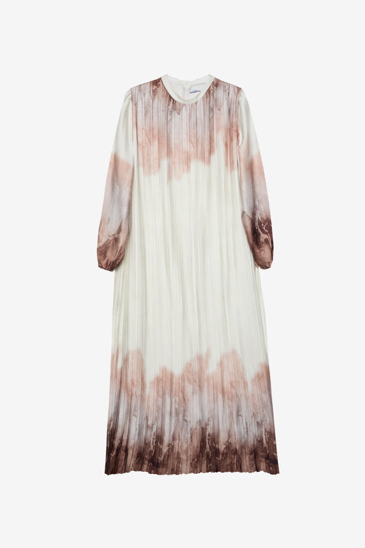 Earthy Tie-Dye Print Pleated Maxi Dress
