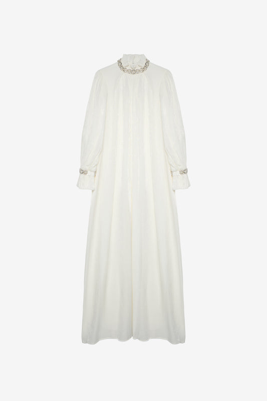 Champagne Shimmer Vintage Gown with Embellished Yoke