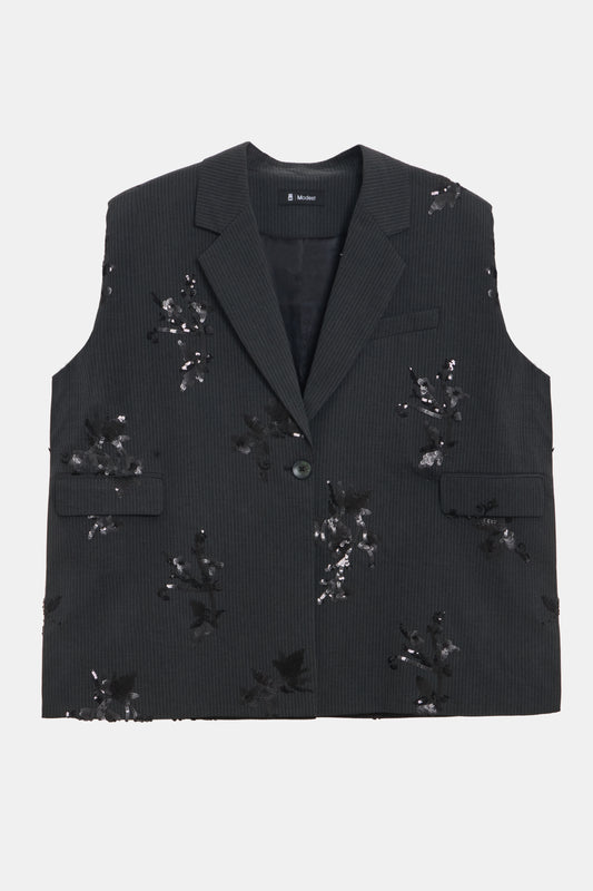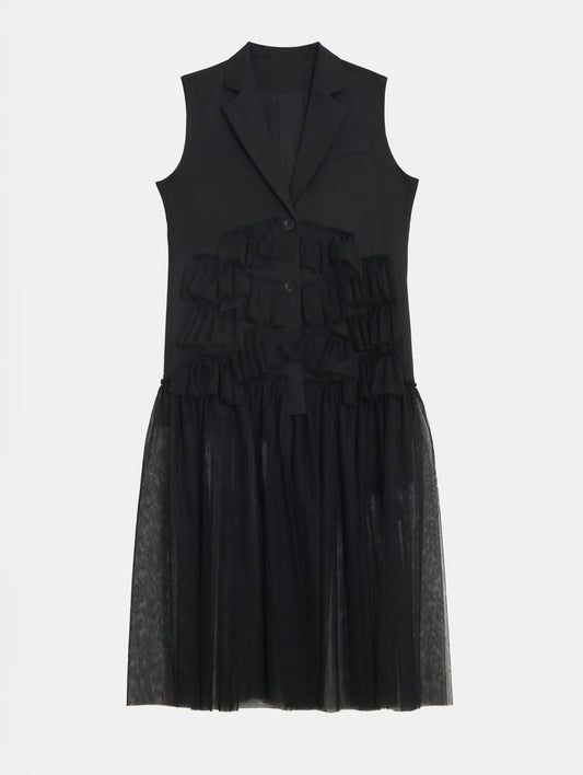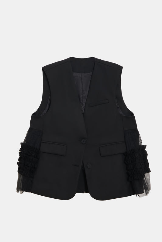 Out Of StockSleeveless Longline Blazer with Tulle Detailing