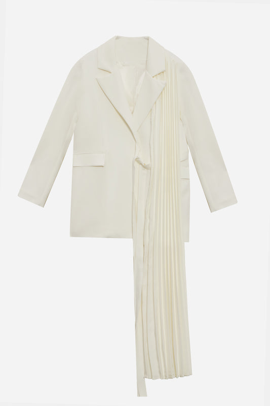 White Emboss Co-Ord Set - Oversized Long Shirt and Wide-Leg Pants