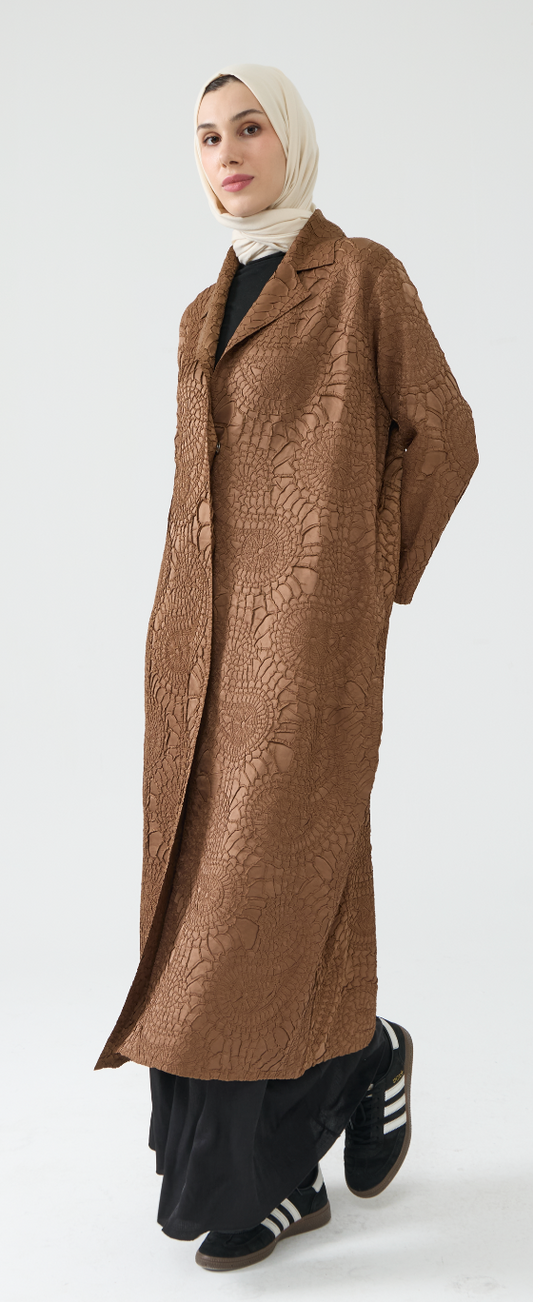 Beige Emboss Co-Ord Set - Oversized Long Shirt and Wide-Leg Pants