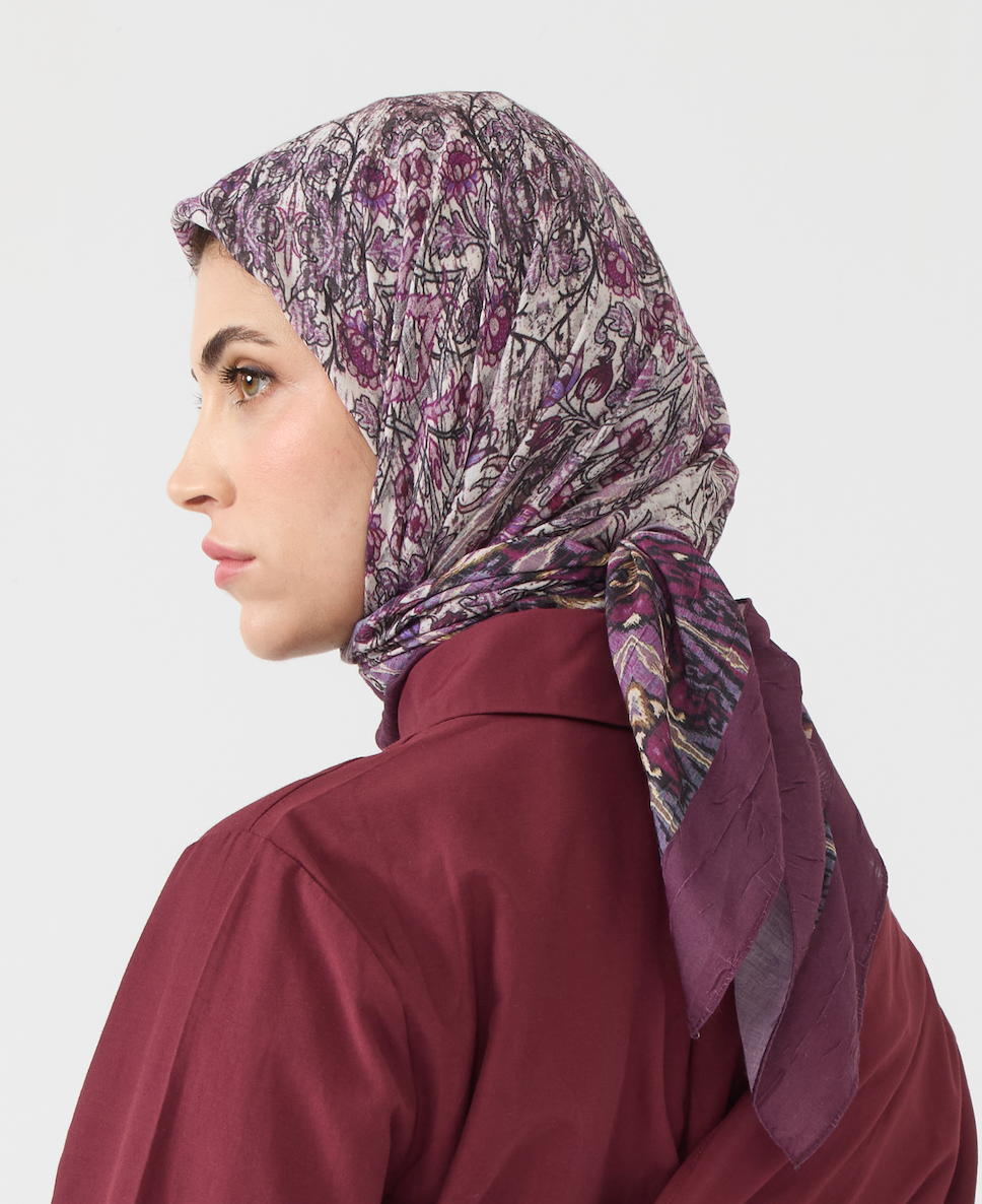 - Decorative Border – The ornate edges frame the scarf beautifully, adding depth and refinement.